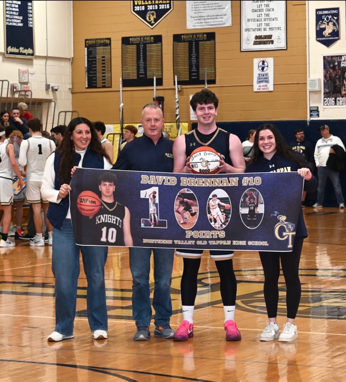 After scoring 455 points through 26 games, David Brennan of Old Tappan High School, added points in the final game of the season, pushing his career mark past 1,000 points. He now stands among the top scorers in program history with another full season still ahead.